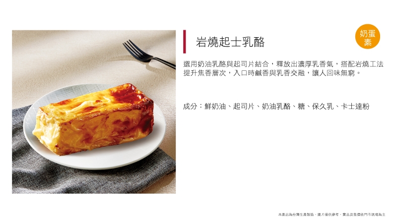 選用奶油乳酪與起司片結合,釋放出濃厚乳香氣,搭配岩燒工法提升焦香層次,入口時鹹香與乳香交融,讓人回味無窮。