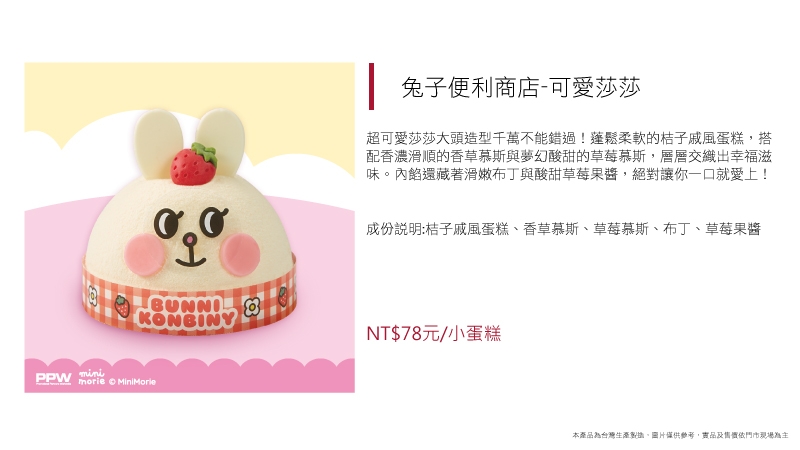 超可愛莎莎大頭造型千萬不能錯過!蓬鬆柔軟的桔子戚風蛋糕,搭配香濃滑順的香草慕斯與夢幻酸甜的草莓慕斯,層層交織出幸福滋味。內餡還藏著滑嫩布丁與酸甜草莓果醬,絕對讓你一口就愛上!