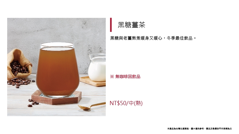 黑糖與老薑熬煮暖身又暖心,冬季最佳飲品。