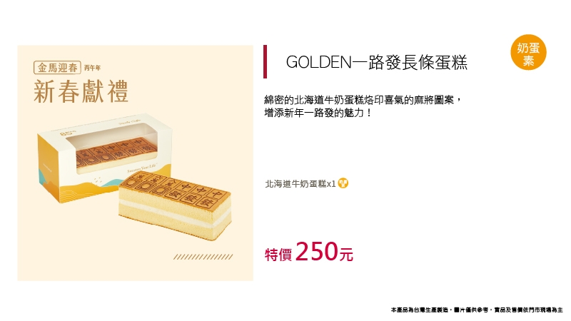 綿密的北海道牛奶蛋糕烙印喜氣的麻將圖案,增添新年一路發的魅力!